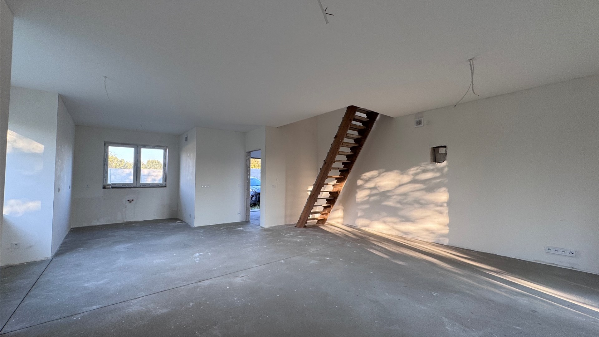 Na sprzedaż wybudowany bliźniak - o powierzchni użytkowej 140,62 m2 dla każdego z budynków. Cała nieruchomość usytuowana jest na działce o powierzchni 1714 m2. Do oferowanej części należy działka o powierzchni 717 m2. Przedmiotem tego ogłoszenia jest lewa połowa bliźniaka. Dojazd z drogi głównej do działki wykonany z płyt betonowych. Budynek oddawany jest w stanie deweloperskim . Nieruchomość uzbrojona w wodę, prąd, kanalizację, deszczówkę, do ogrzewania i ciepłej wody służyć będzie pompa ciepła, przygotowana jest również instalacja elektryczna pod fotowoltaikę gdyby klient chciał sobie takową zainstalować we własnym zakresie, w całym budynku jest ogrzewanie podłogowe. Nieruchomość posiada miejsce na kominek, kotłownię i garaż. Dom budowany w technologii tradycyjnej z zastosowaniem wysokiej klasy materiałów.