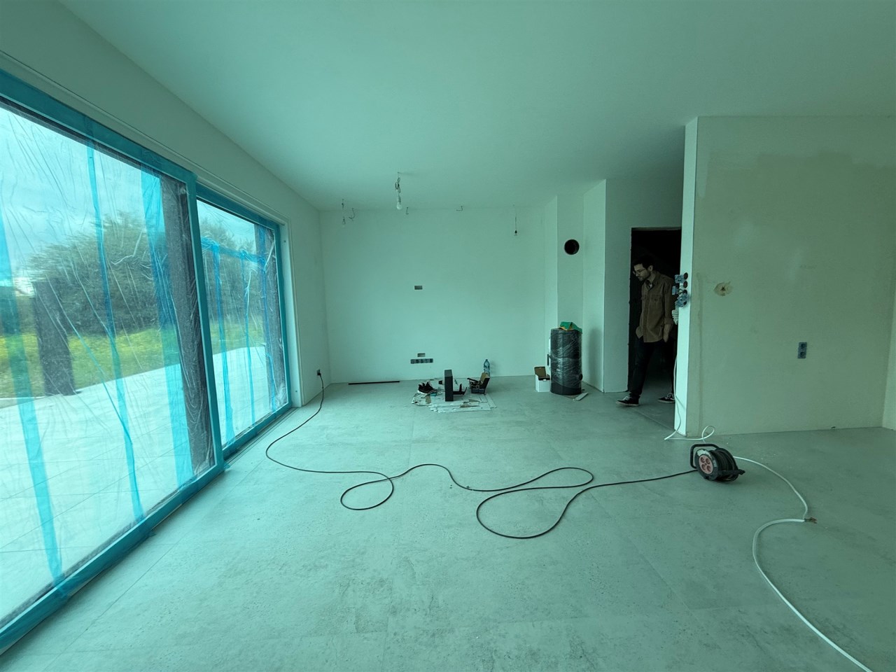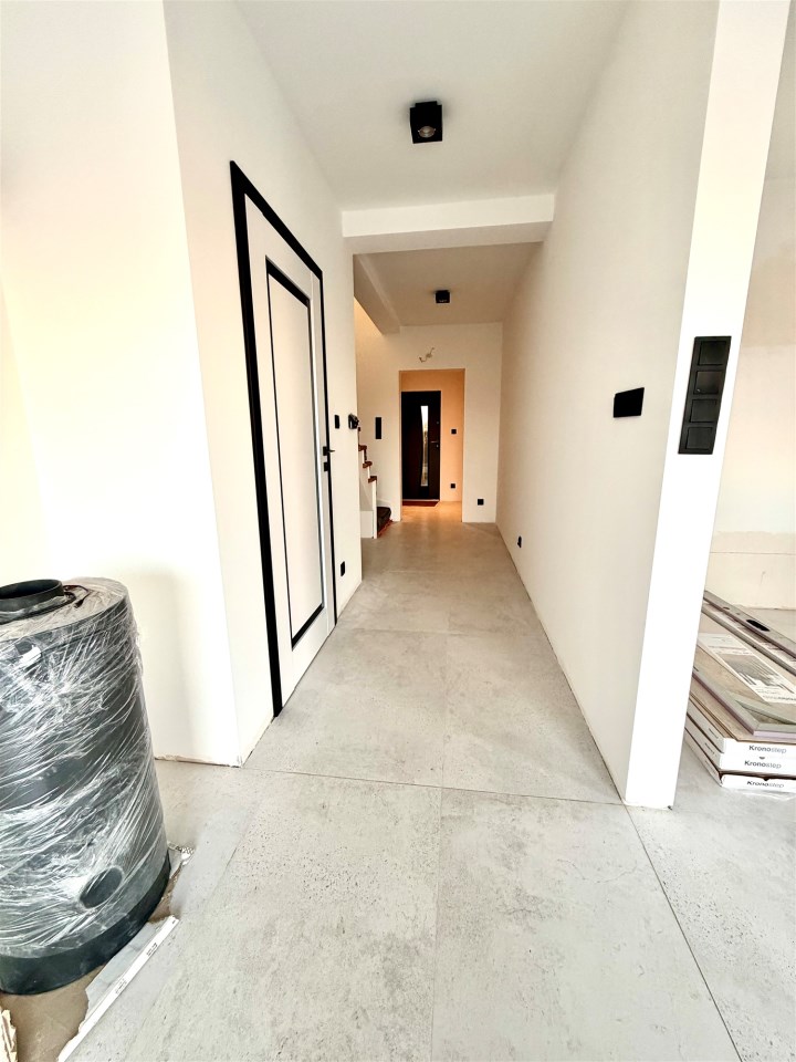 salon połączony z aneksem kuchennym, wyjście na duży taras, wc , z holu przejście do garażu.
