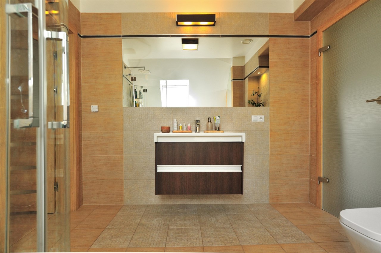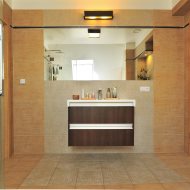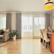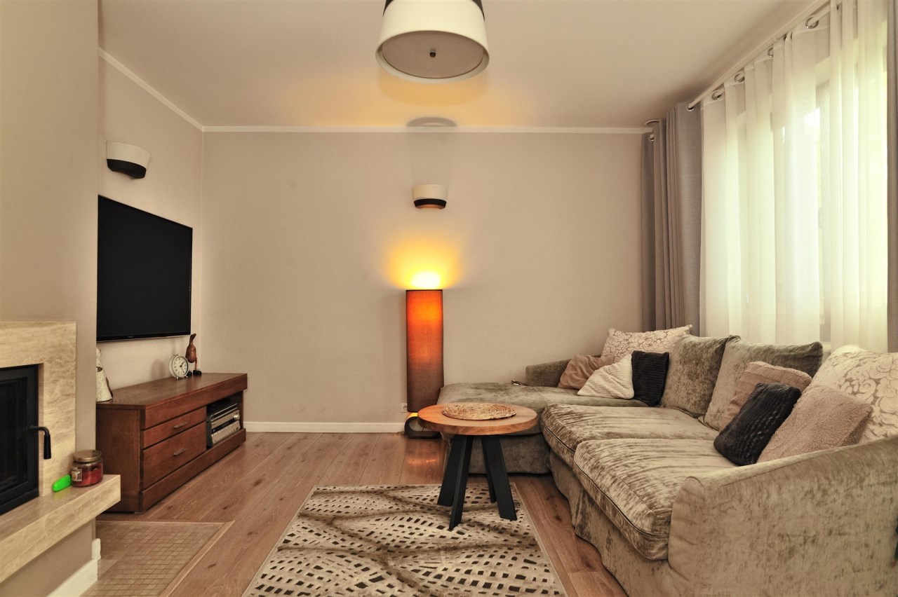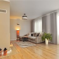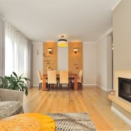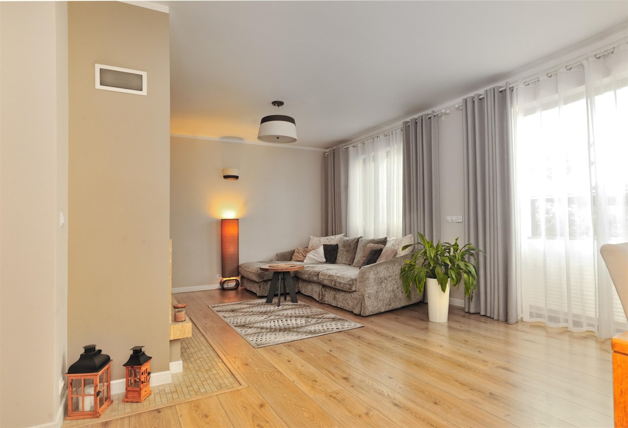 W salonie, łazienkach i na korytarzach ogrzewanie podłogowe, w sypianiach grzejniki.