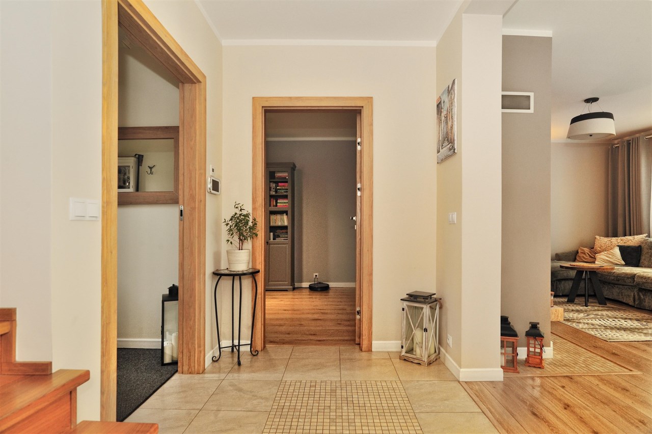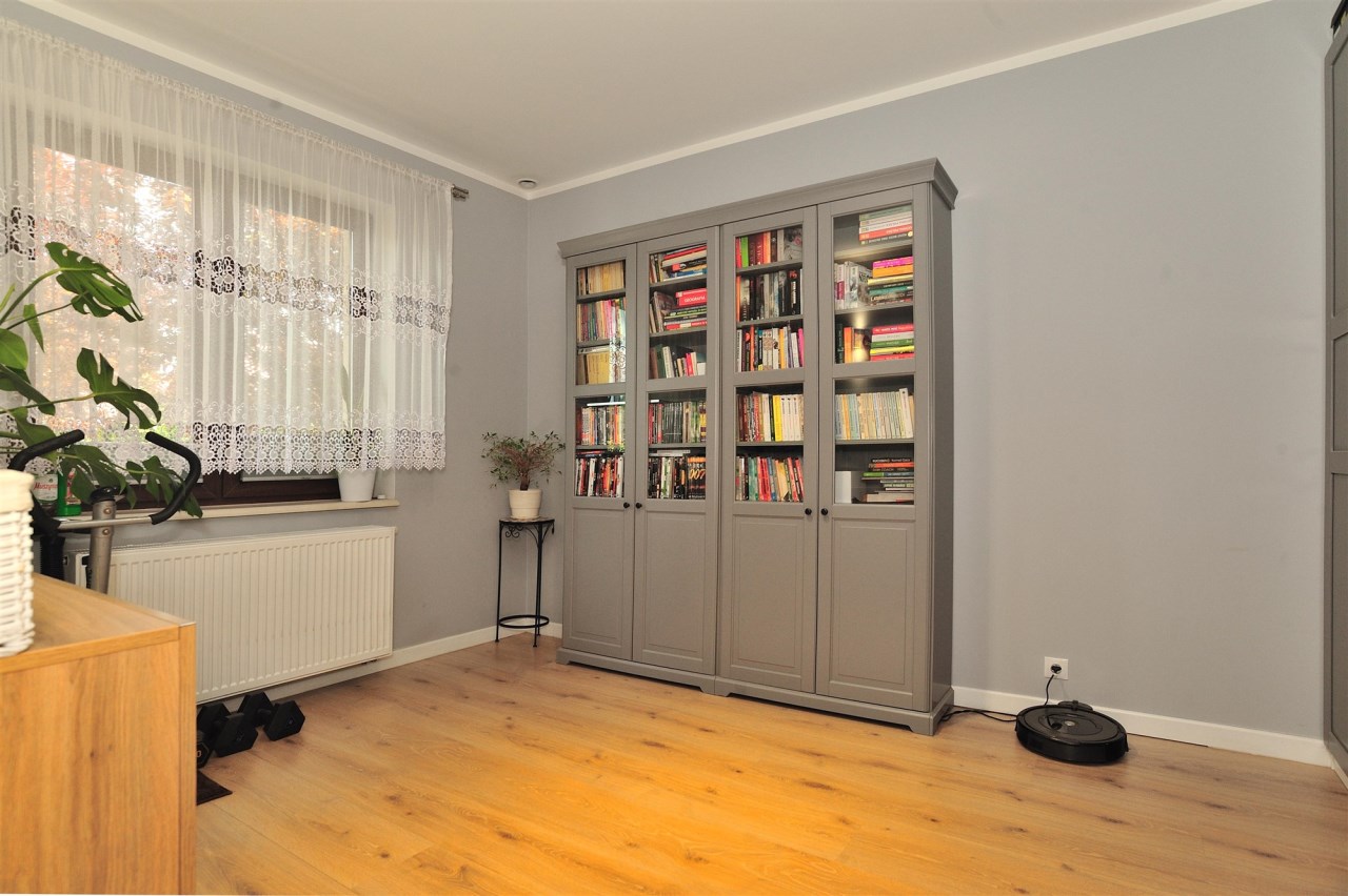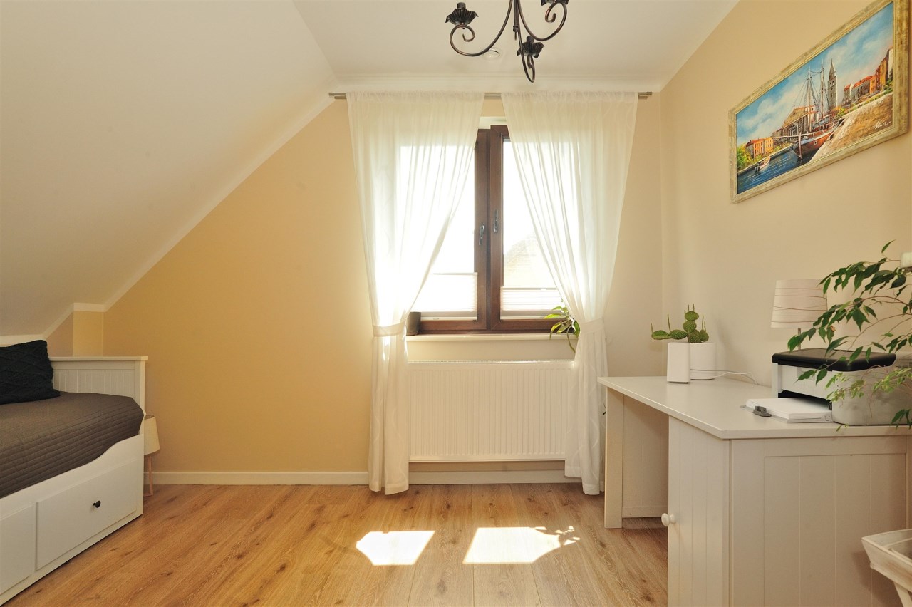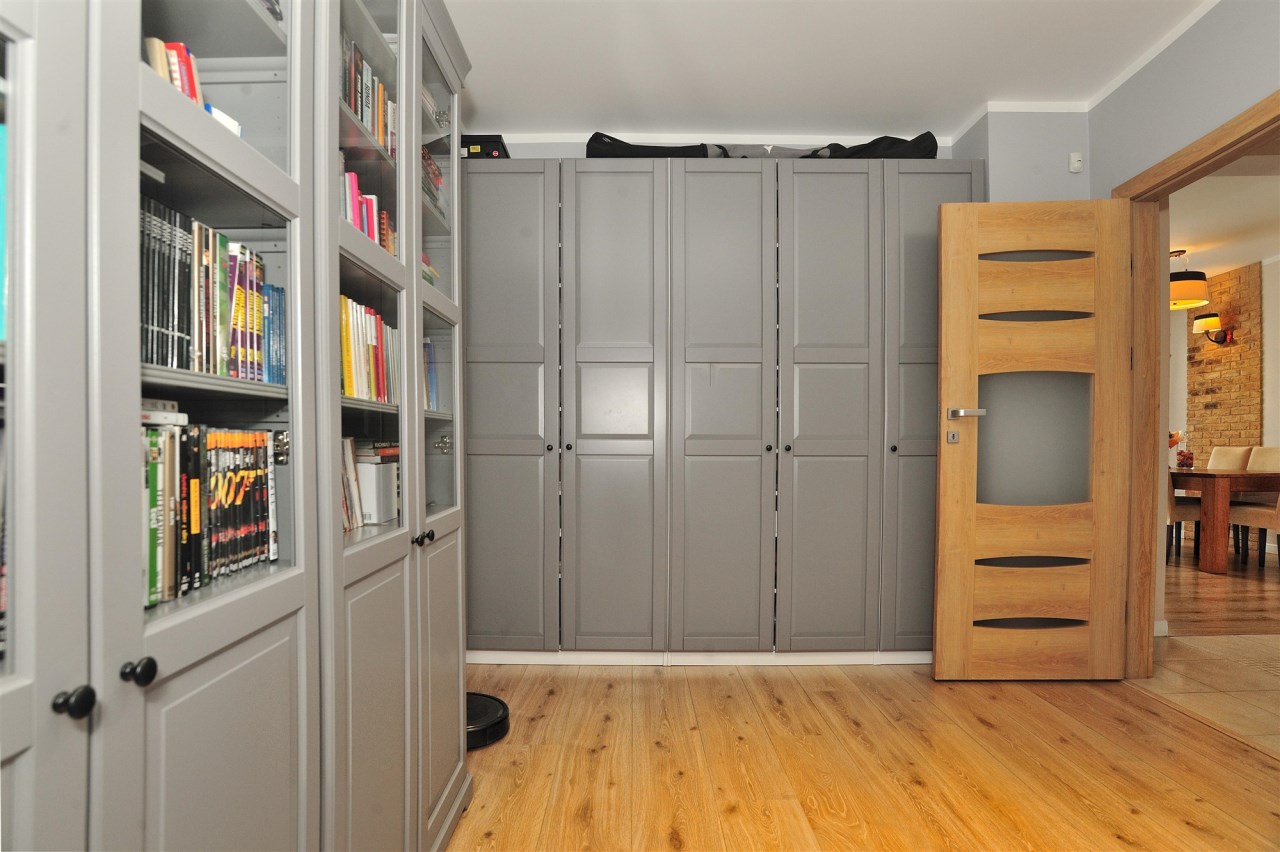 Dodatkowo pomieszczenie nad garażem, obecnie wykorzystywane jako sezonowa garderoba/duże szafy/ pralnia/prasowalnia.