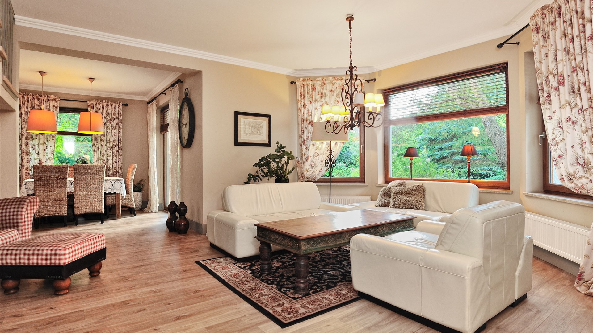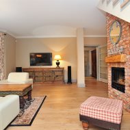 Wnętrza zostały zaprojektowane z myślą o wygodzie domowników. Przestronny, jasny salon z kominkiem stanowi centrum życia rodzinnego. Z salonu prowadzi wyjście na taras i do ogrodu, co sprzyja odpoczynkowi na świeżym powietrzu.