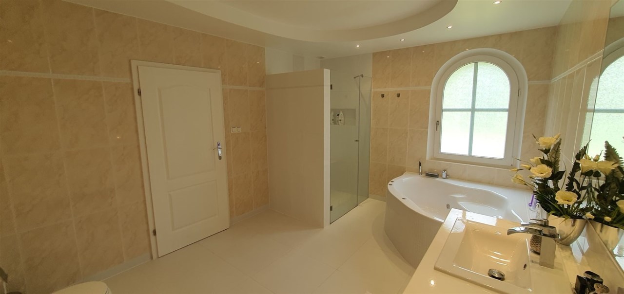 Piętro domu to część sypialniana tj. 4 pokoje w tym dwie sypialnie z balkonami oraz łazienki z . Sypialnia główna oraz hall jest wyposażony w klimatyzację. Na piętrze znajduje sie również obszerna przestrzeń nad garażem do indywidualnej aranżacji