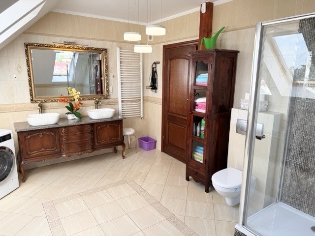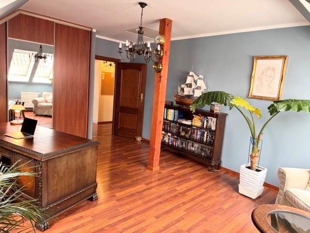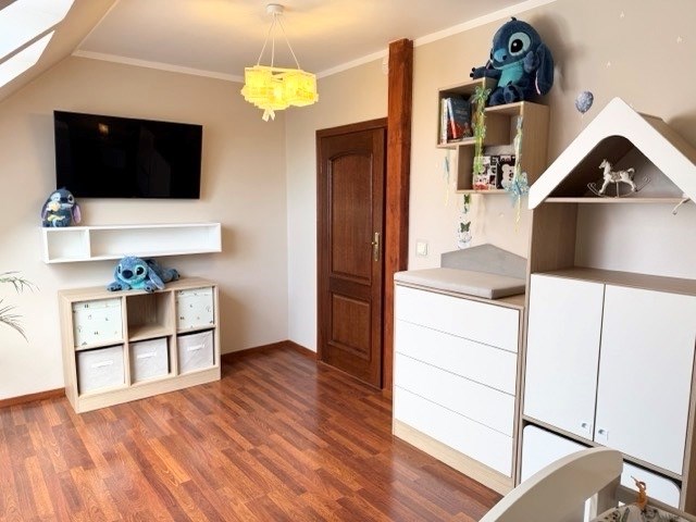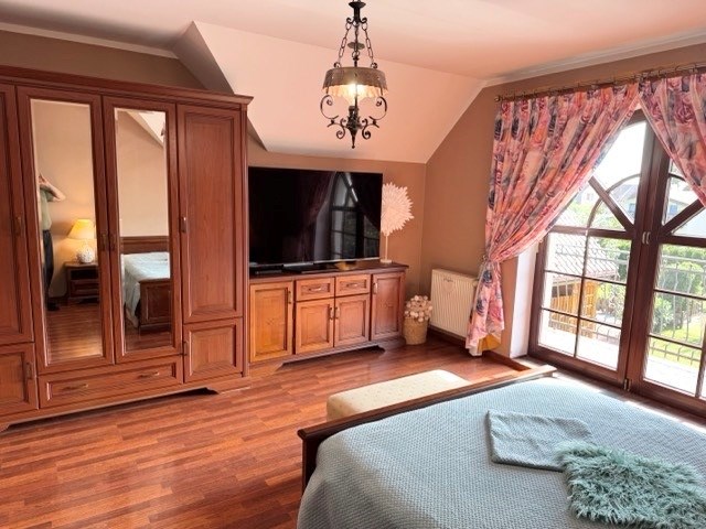 Poddasze: hall, 4 sypialnie (w tym główna z balkonem), łazienka.