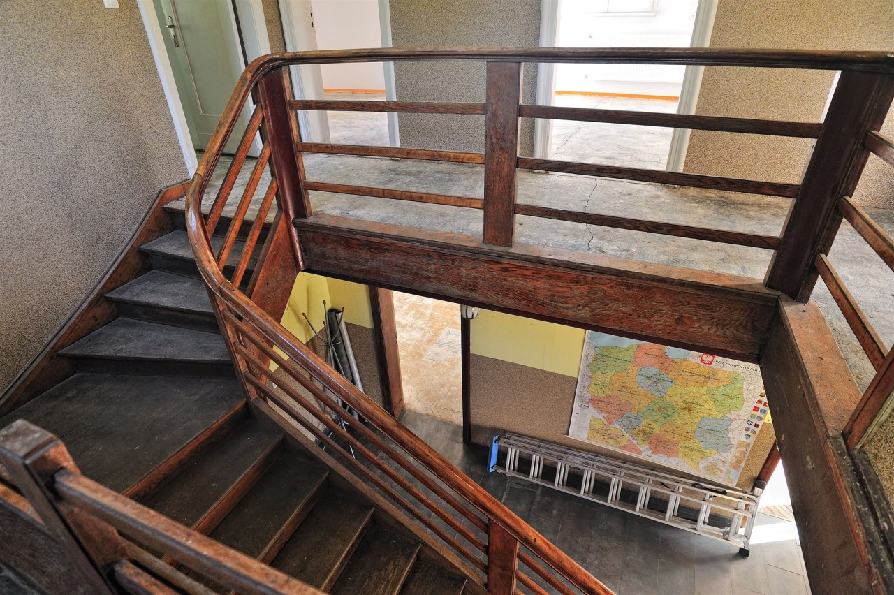 Oryginalne okiennice, schody i stolarka drzwiowa.