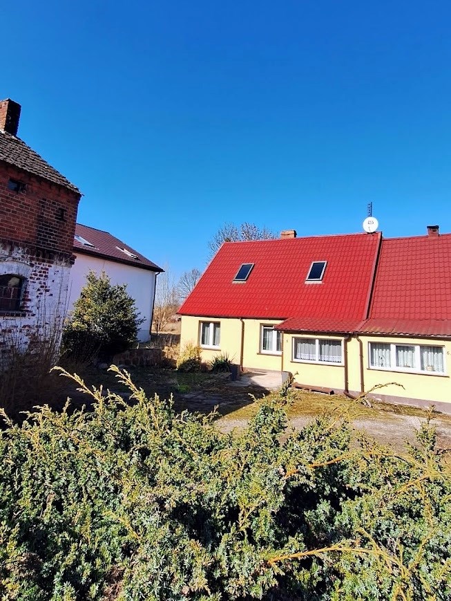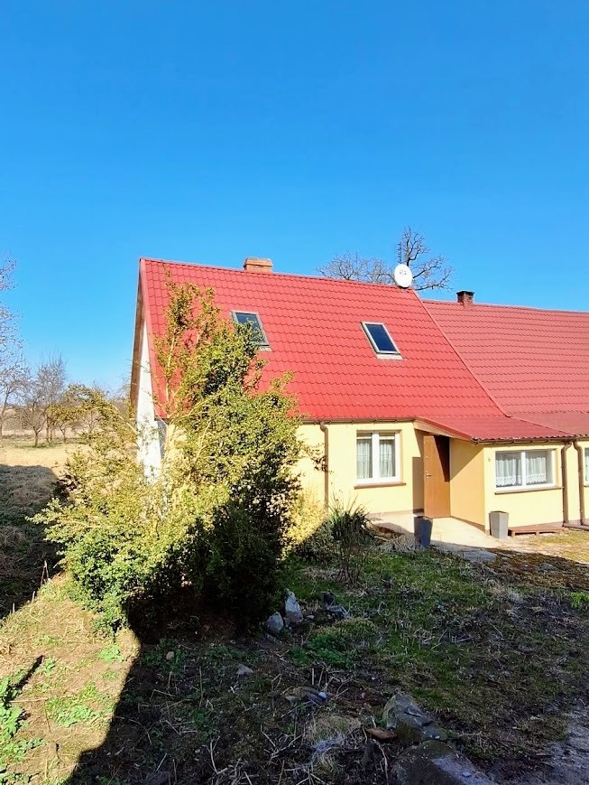 Na Sprzedaż Dom Bliźniak w spokojnej, cichej wiosce otoczonej polami i lasami. Dom o powierzchni ok. 70m2 , Dwa duże pokoje , duża kuchnia , duża łazienka , korytarz, przedsionek oraz duże poddasze. Dom bez barier architektonicznych - całość na parterze bez schodów. Dodatkowo budynki gospodarcze. Działka ok. 1650m2. Ogrzewanie piec kaflowy plus centralne na drewno.