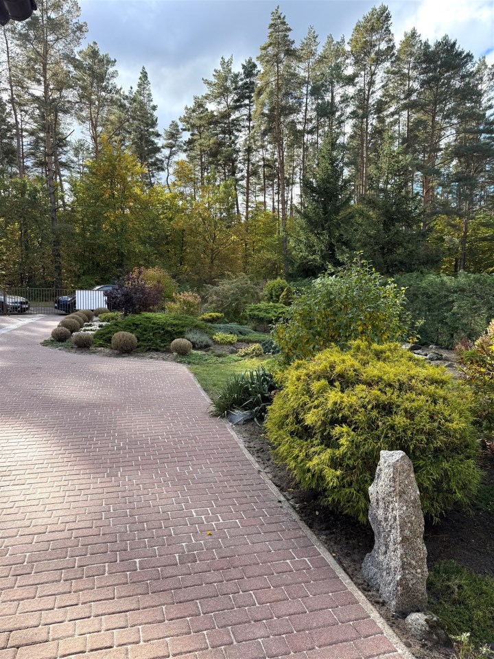 Ogrodzenie, brama wjazdowa, podjazd z kostki brukowej