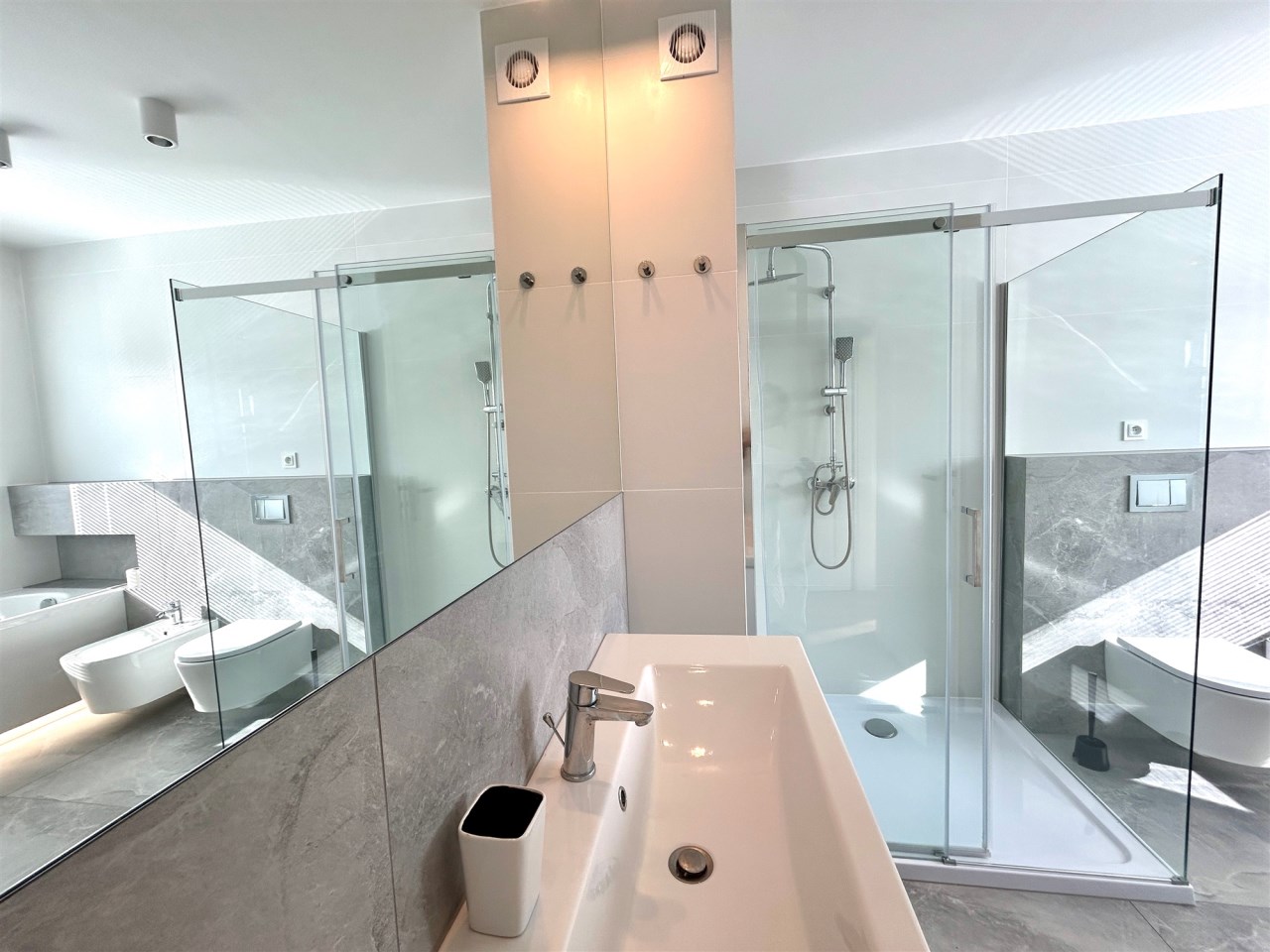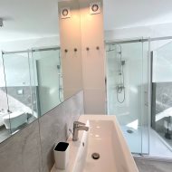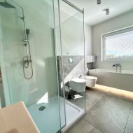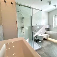 Piętro: trzy sypialnie, garderoba, przestronna łazienka z wanną i prysznicem.