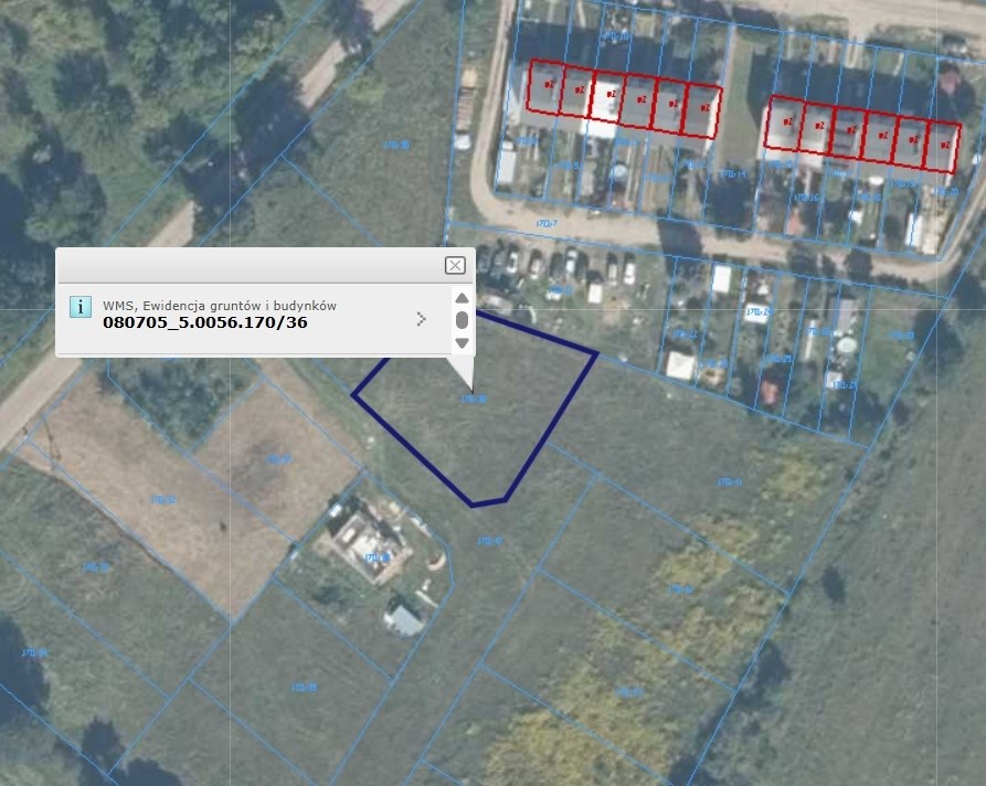• Działka nr 170/36 – powierzchnia 10,26 arów (1 026 m²)