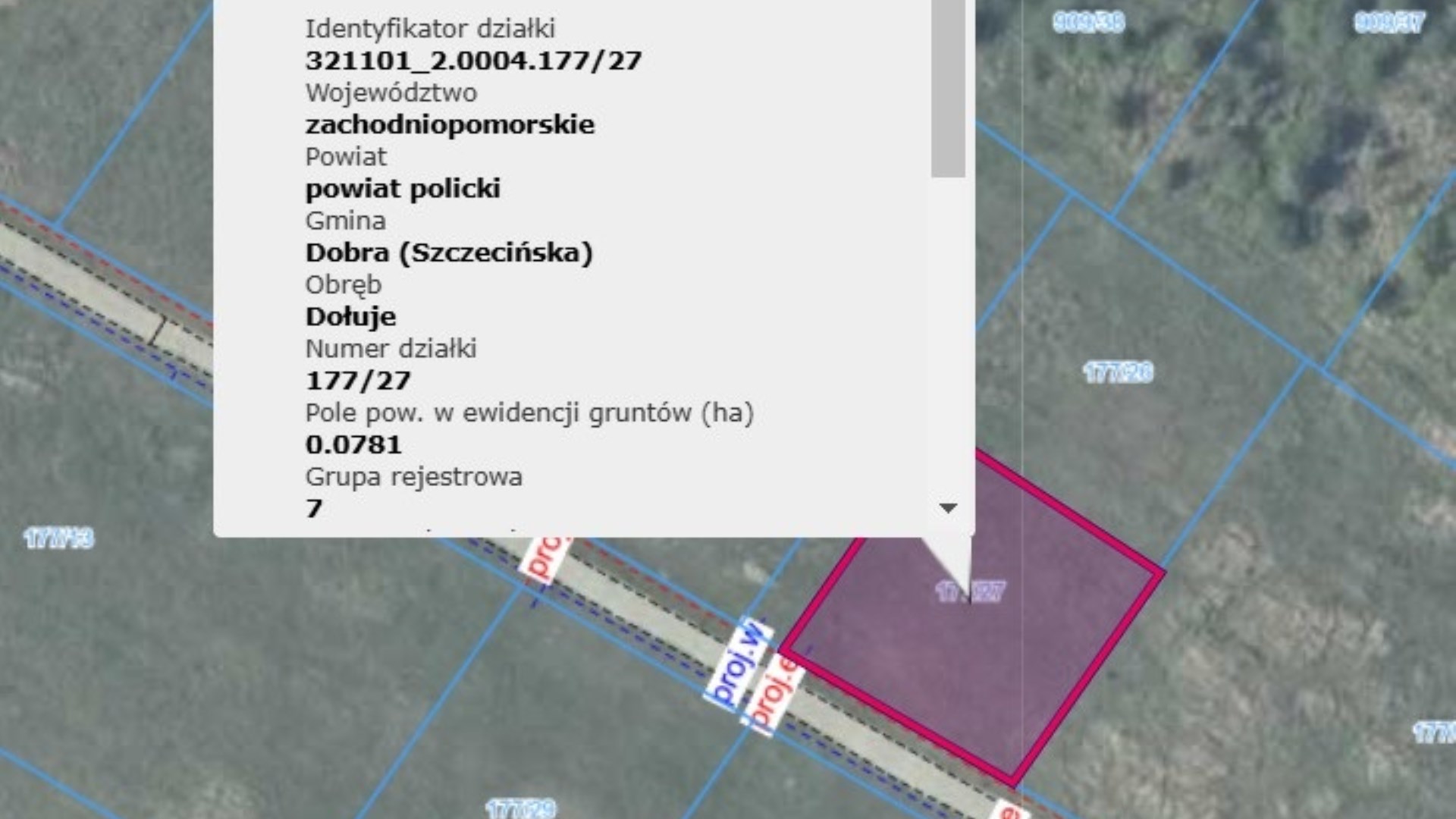 Działka nr 177/27. Działka 177/24 również na sprzedaż. Pozostałe dwie o nr 177/25 i 177/26 sprzedane