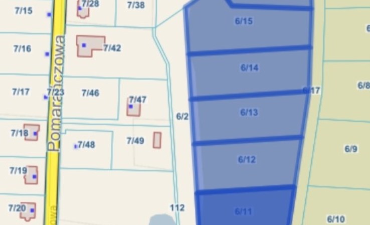 Działka o powierzchni 3002m2 w kształcie prostokąta. Na terenie działki znajduje się piękny staw.