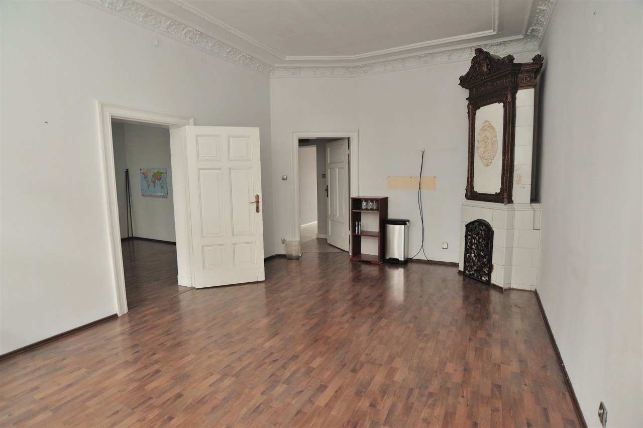Na powierzchnię lokalu składają się trzy pokoje, w których zachowane zostały sztukaterie, stary piec, duże okna, jeden z pokoi znajdujący się od podwórka idealny jako pokój konferencyjny lub gabinet, dodatkowo małe archiwum, sekretariat z aneksem kuchennym i łazienka z kabiną prysznicową.
