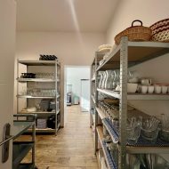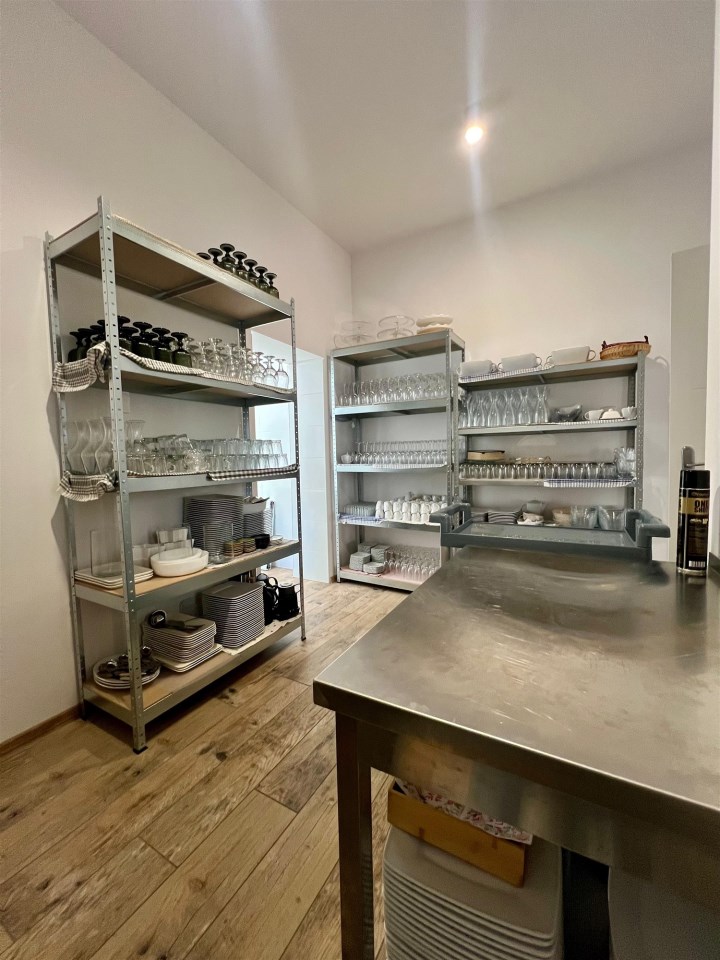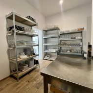 •    Zaplecze wyposażone: zmywak, zmywarka, lodówka, mikrofala, kuchenka podręczna, stoły robocze,