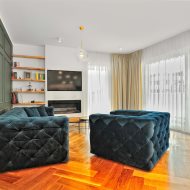 Przestronny salon z bio kominkiem i wyjściem na taras