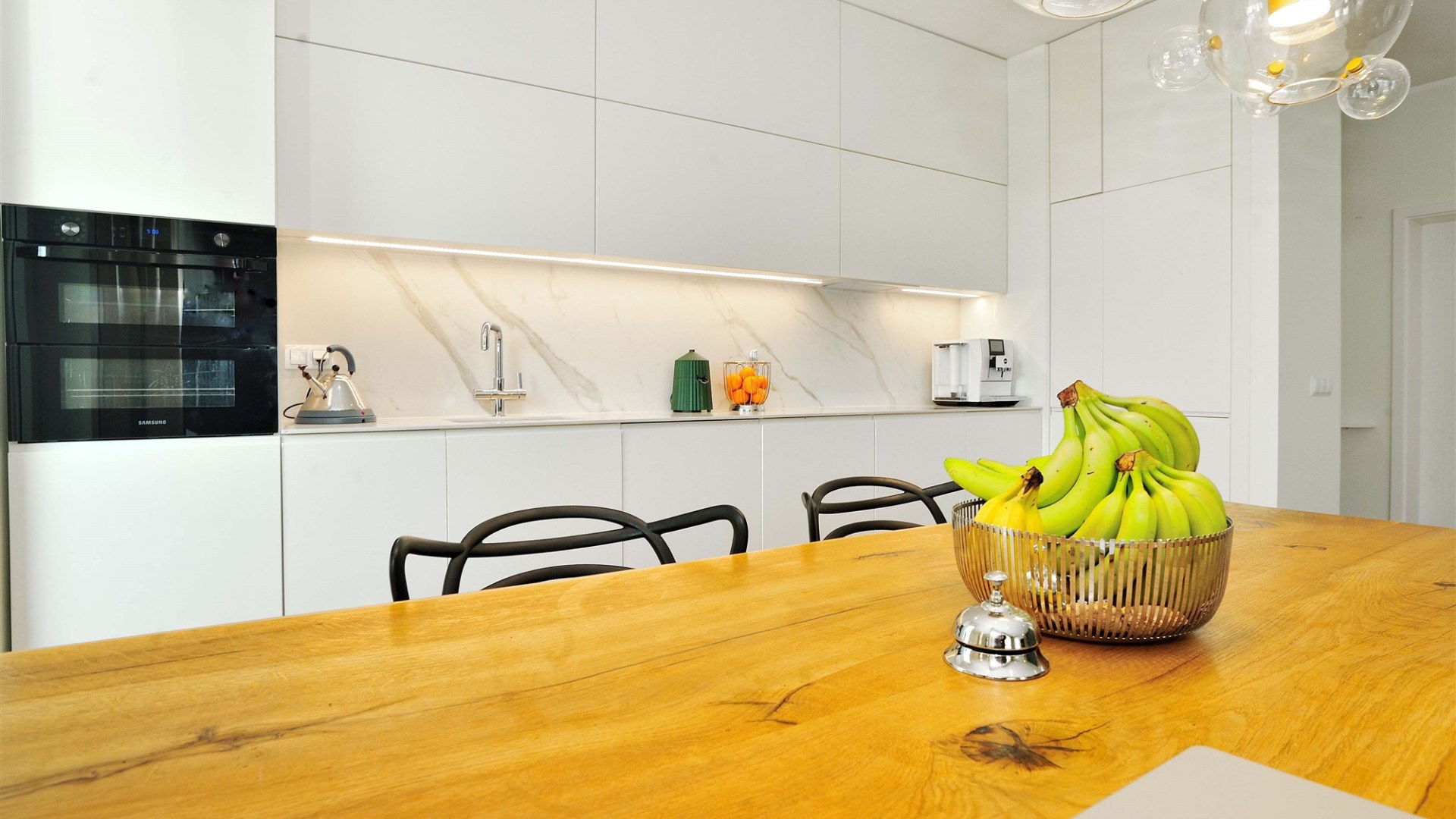 Nowoczesna, otwarta kuchnia w pełni wyposażona w sprzęt AGD