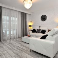 W pokojach ogrzewanie podłogowe i kaloryfery, zabudowy na wymiar, oświetlenie ambientowe. Parapety kamienne. Drzwi przylgowe. Na podłodze w całym mieszkaniu wysokiej jakości panele w jednej tafli.