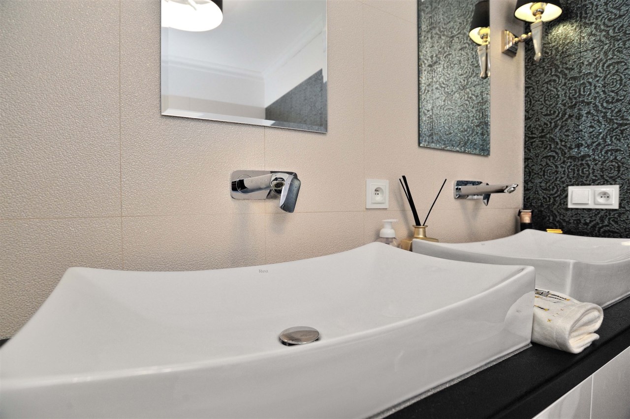 2 umywalki dla ceniących wygodę i funkcjonalność, gres Valentino. Osobna wentylacja.