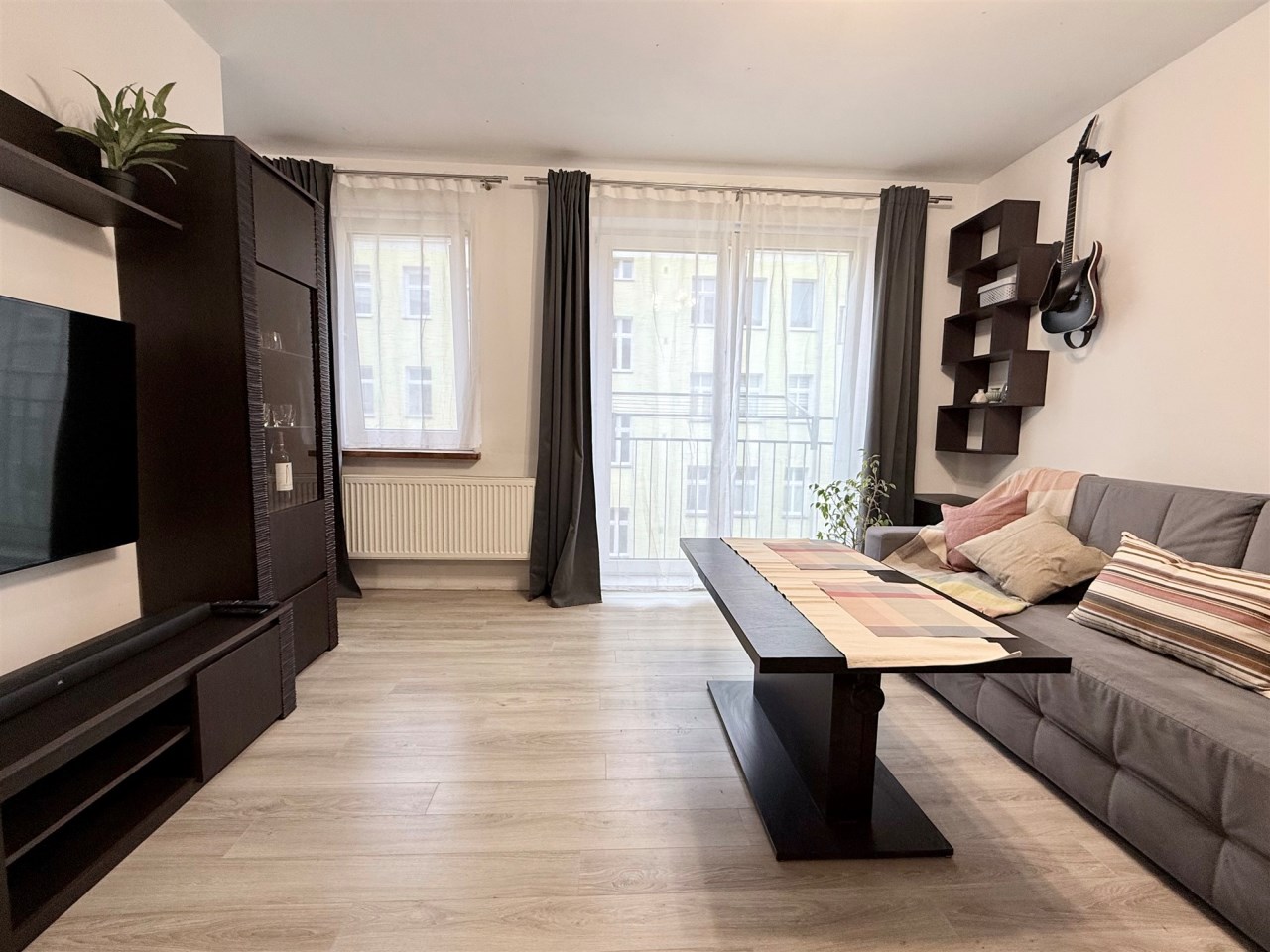 Układ mieszkania jest bardzo praktyczny, co pozwala na wygodne zagospodarowanie przestrzeni.