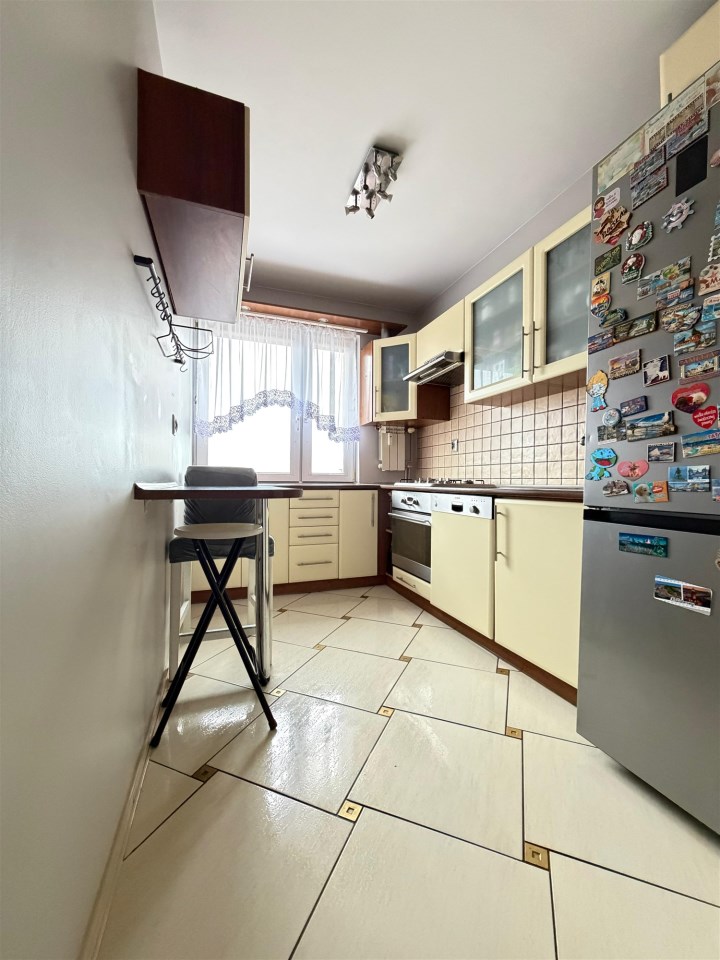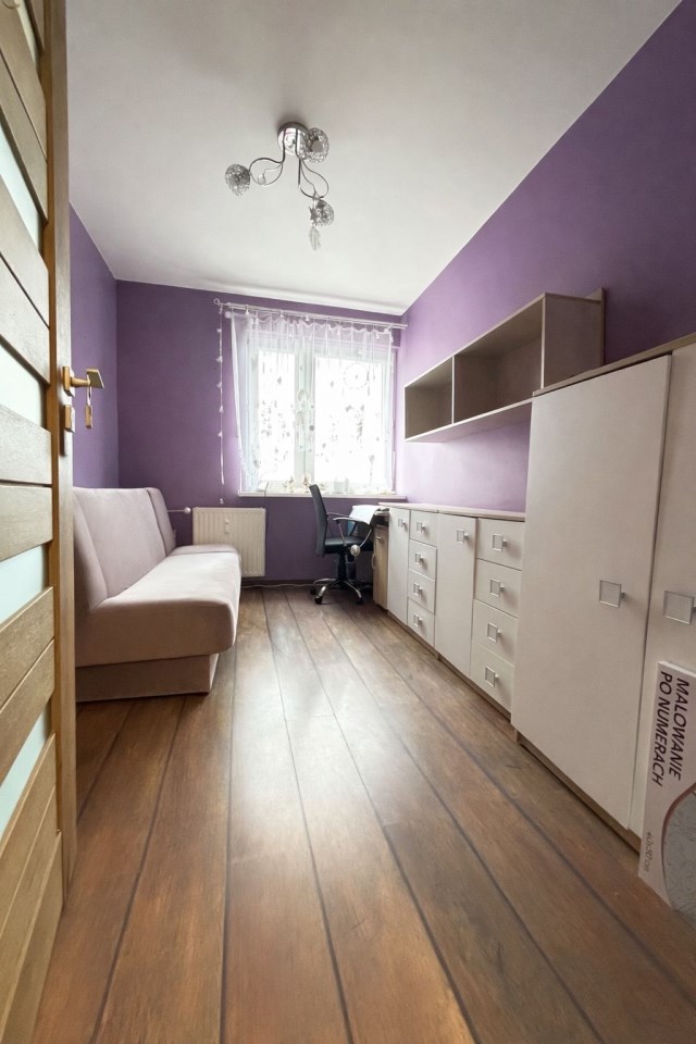 Kuchnia jest oddzielna, jasna, z oknem, wyposażona w zabudowę meblową. Łazienka oraz WC stanowią osobne pomieszczenia, co znacząco zwiększa wygodę mieszkańców.