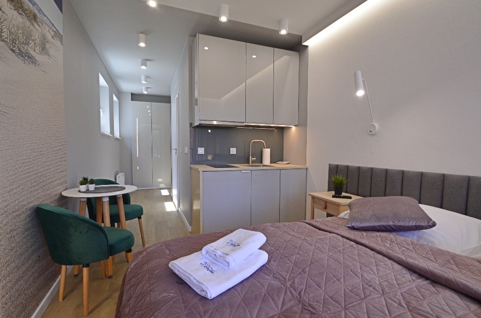 To idealne mieszkanie dla tych, którzy chcą mieć studio nad morzem lub zainwestować w nieruchomość z gwarancją wynajmu przez cały rok.