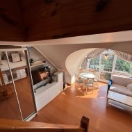 • Poziom I: przestronny salon z aneksem kuchennym, sypialnia, łazienka z WC