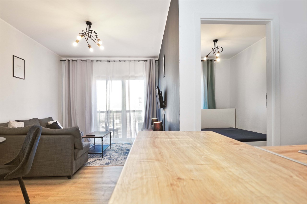 Na łączą powierzchnię 37,99 m2 mieszkania składają się w pełni wyposażone dwa pokoje, kuchnia, łazienka oraz przedpokój.