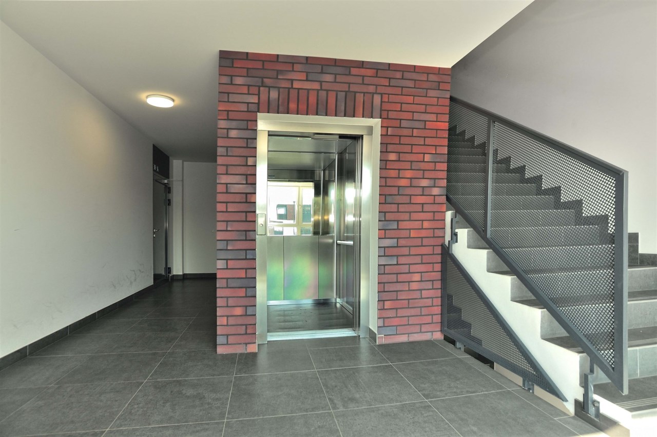 Klatka schodowa czysta, schludna, z dużymi doświetleniami w postaci okien.