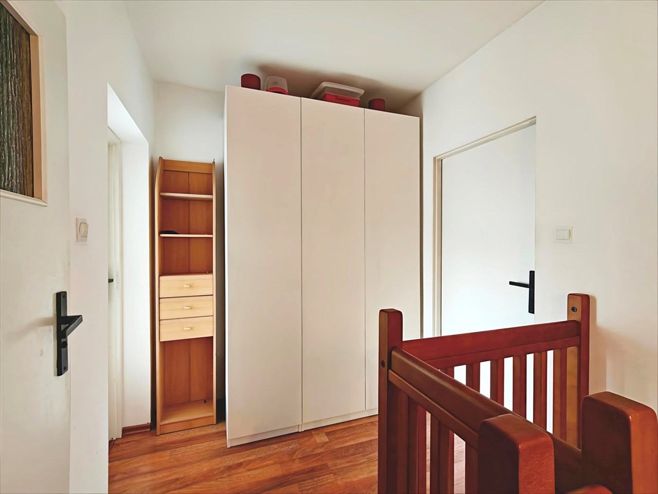 Górna kondygnacja to wyraźnie oddzielona, spokojna część prywatna. Znajdują się tu trzy sypialnie, w tym komfortowa sypialnia małżeńska z wyjściem na duży balkon od strony południowej. To idealne miejsce na poranną kawę, chwilę relaksu czy odpoczynek po intensywnym dniu. Południowa ekspozycja zapewnia doskonałe doświetlenie wnętrza przez większą część dnia.