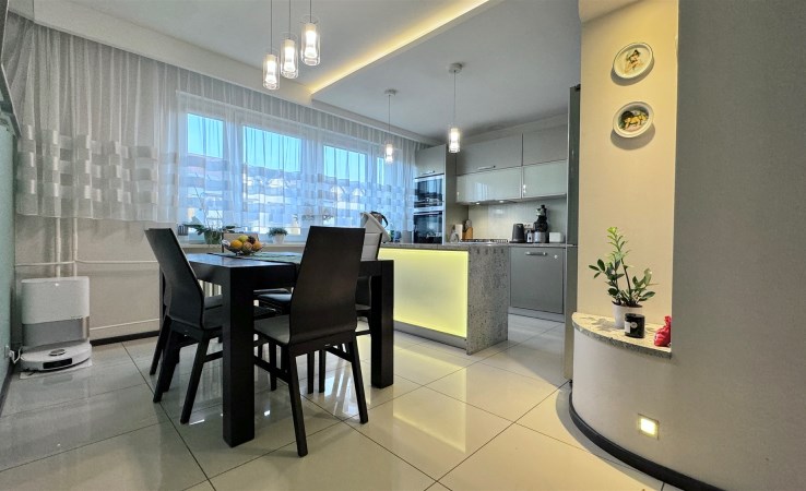 Mieszkanie jest w bardzo dobrym stanie, remontowane zaledwie kilka lat temu. Na podłogach są kafle i deska barlinecka, okna PCV, ściany gładzone malowane. W mieszkaniu jest zainstalowana rekuperacja ścienna, co gwarantuje zawsze świeże powietrze w mieszkaniu.