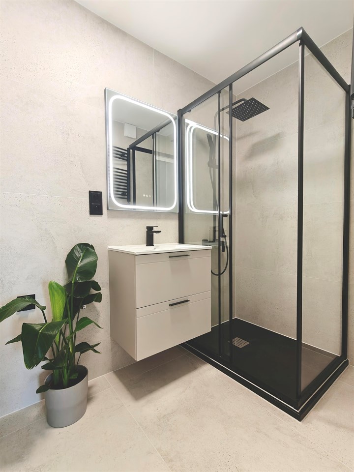 | Wyposażenie łazienki | umywalka na szafce, lustro, kabina prysznicowa |