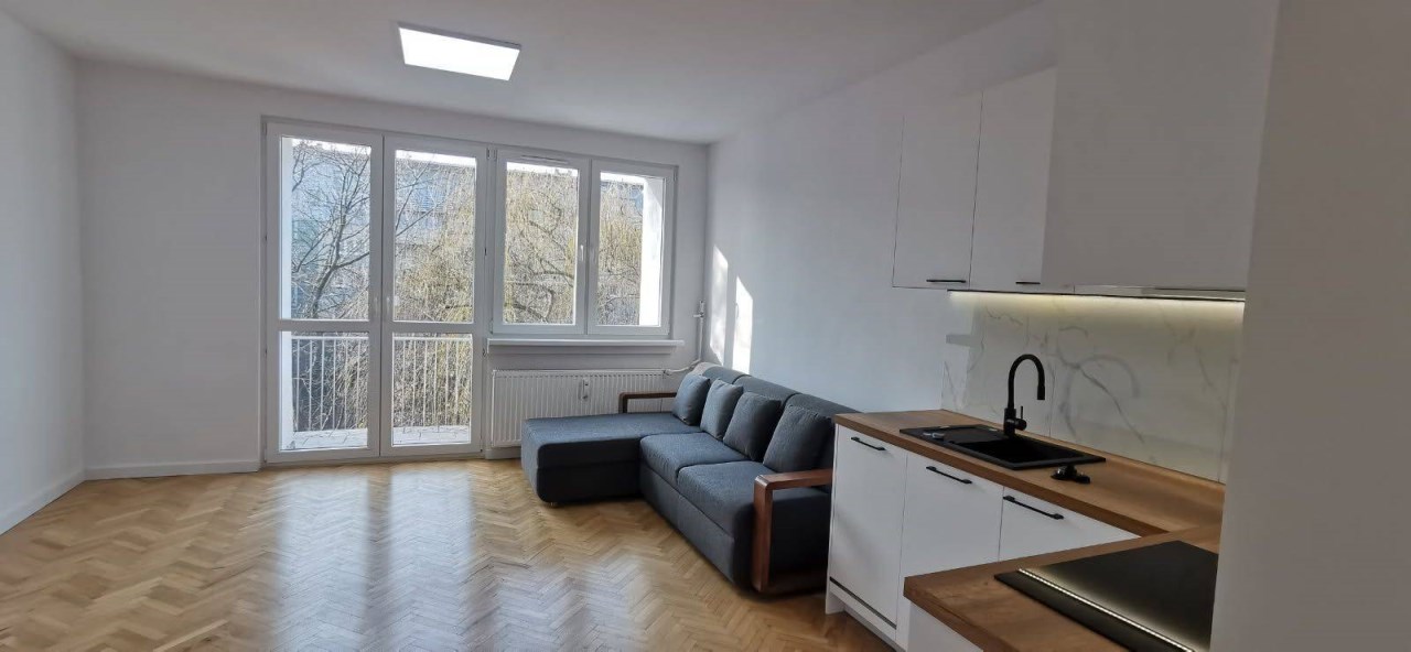 Powierzchnia 40 m² została zaprojektowana z myślą o funkcjonalności i estetyce. Mieszkanie przeszło generalny remont – wymieniono instalacje, stworzono kuchnię na wymiar, zamontowano nowoczesny nowy sprzęt AGD, a całość dopełnia łazienka utrzymana w nowoczesnym, ponadczasowym stylu.