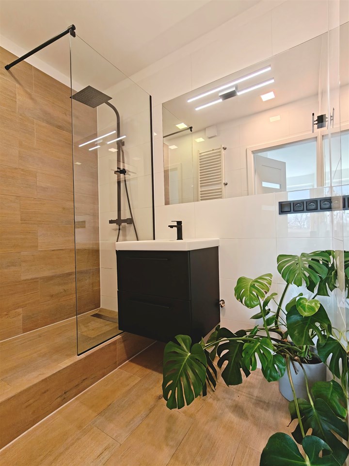 | Wyposażenie łazienki | umywalka na szafce, lustro, kabina prysznicowa |