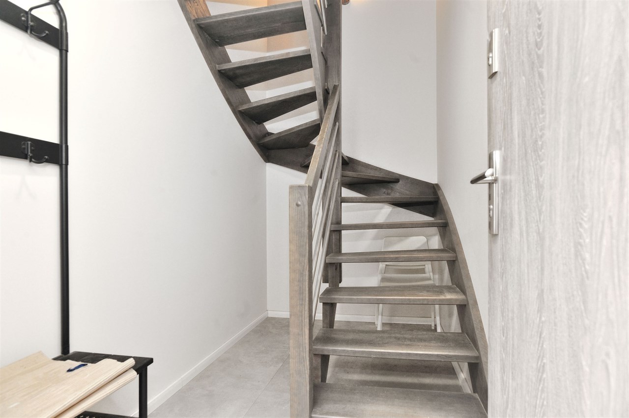 II poziom, dwie sypialnie z wyjściem na taras, łazienka z kabiną prysznicową oraz aneks kuchenny w korytarzu.