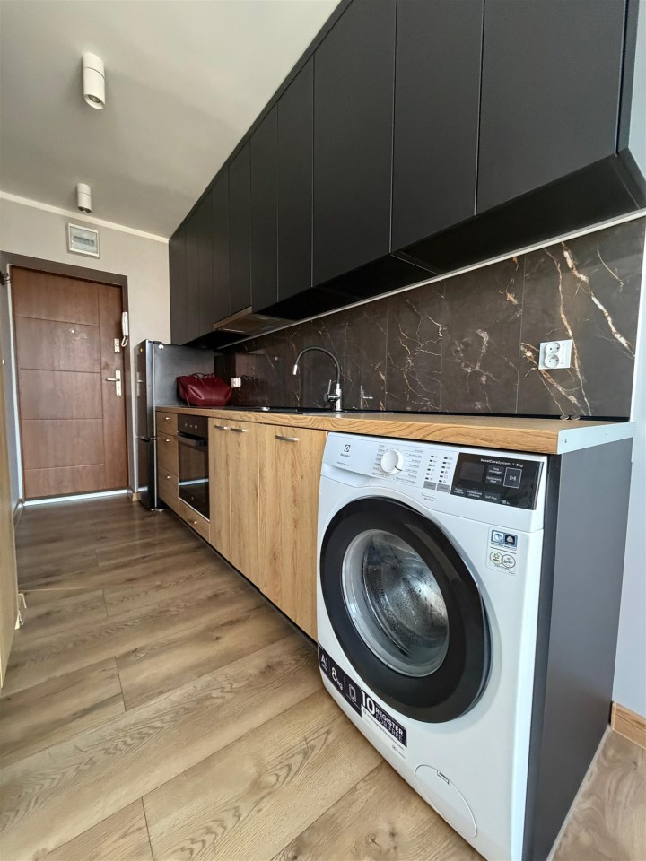 Kawalerka jest w pełni umeblowana, wraz ze sprzętami AGD.