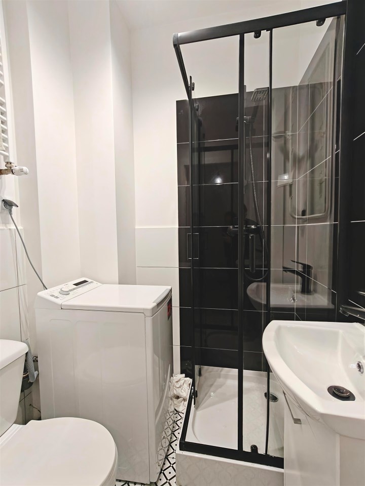 | Wyposażenie łazienki | kabina prysznicowa, pralka, umywalka na szafce, WC |