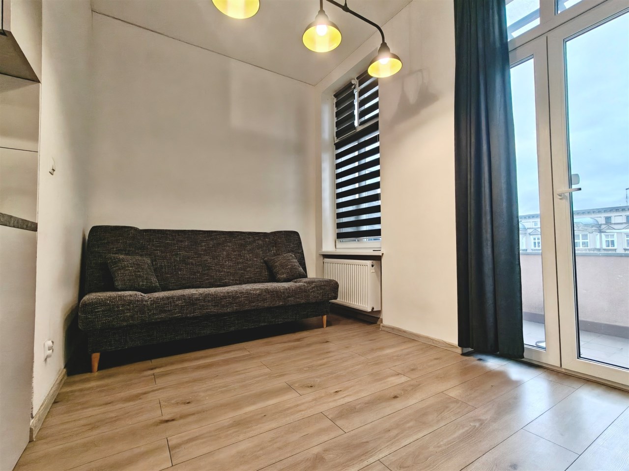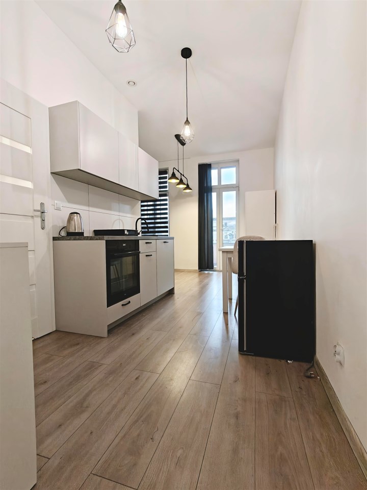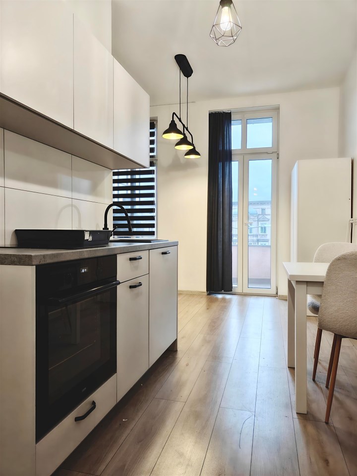 Do wynajęcia przytulna kawalerka o powierzchni ok. 25 m² z balkonem, położona na 2 piętrze w odnowionej kamienicy w Centrum miasta. Klatka schodowa jest czysta i zadbana.