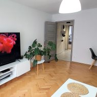 Mieszkanie składa się z pokoi 19/9m2,  holu 7m2, oddzielnej kuchni 7m2, łazienki z WC 3,6m2 i przynależnej piwnicy. Koszty utrzymania- czynsz do spółdzielni liczony ostatnio na 2 osoby (w tym zaliczki na wodę, ogrzewanie, usuwanie nieczystości, fundusz remontowy) około 785zł. Łączne koszty dla najemcy obejmują cenę najmu+ opłaty do spółdzielni, prąd i gaz.