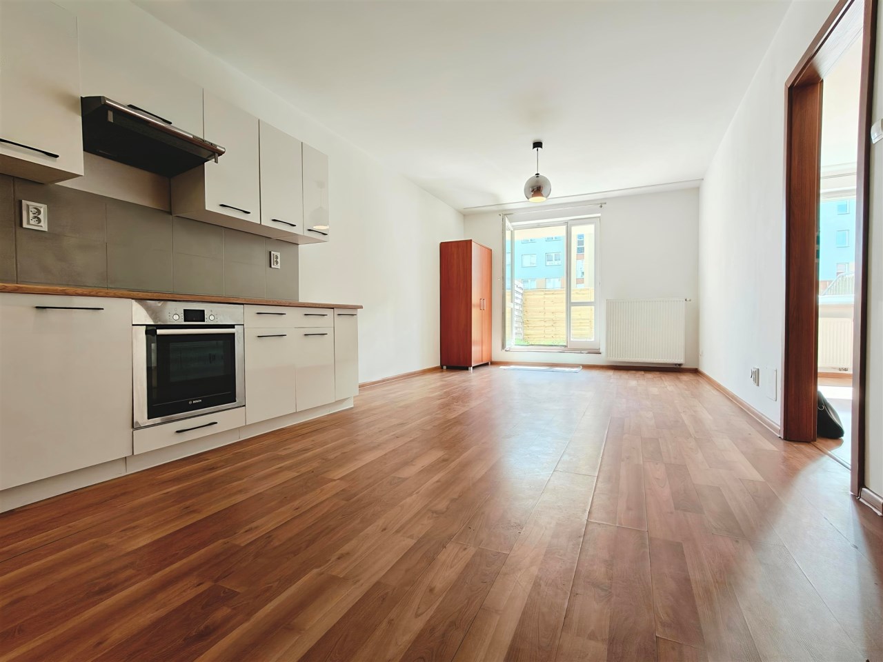Przestronny salon z aneksem kuchennym z bezpośrenim wyjściem na prywatny ogródek ok. 30 m²;