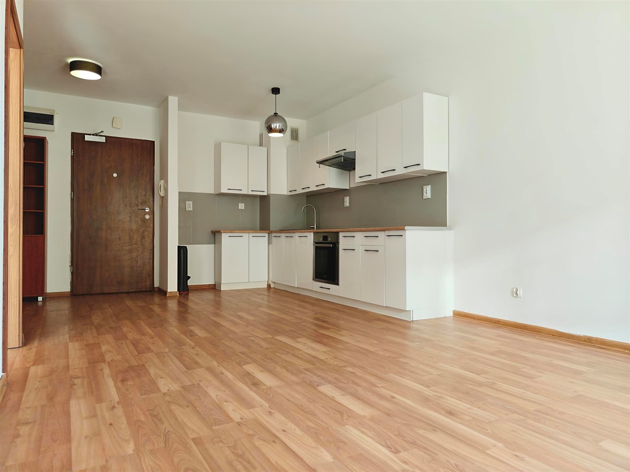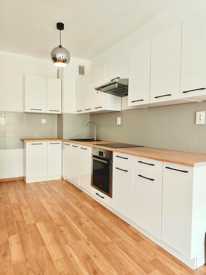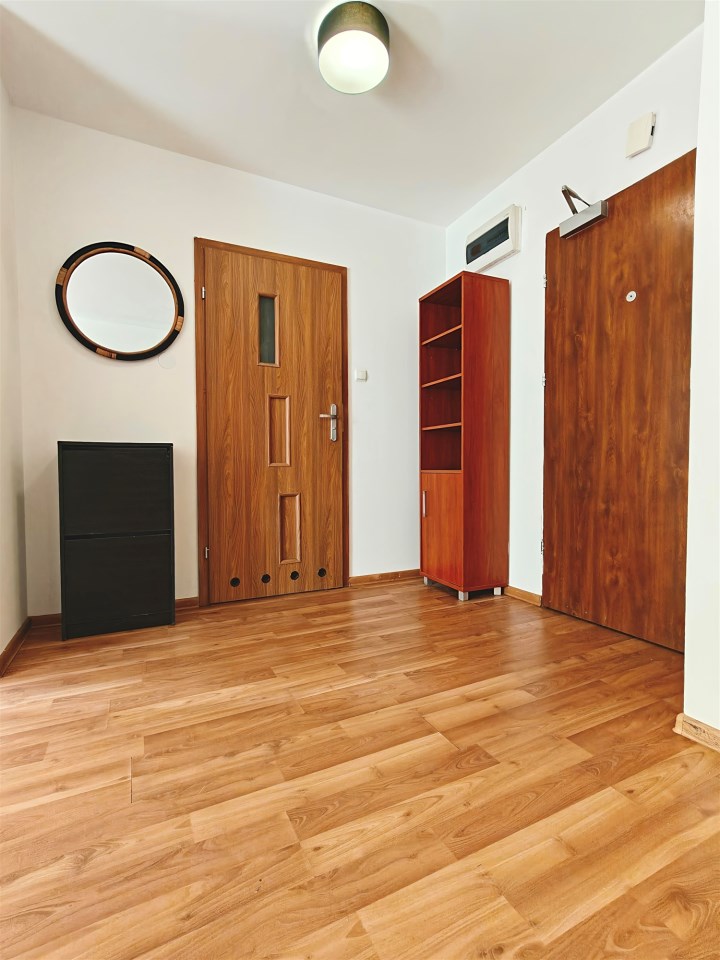 Mieszkanie jest częściowo umeblowane. Kuchnia wyposażona w meble, płytę elektryczną, piekarnik oraz zmywarkę. W sypialni i salonie znajdują się łącznie dwie szafy oraz komoda. Pozostałe umeblowanie we własnym zakresie Najemcy.