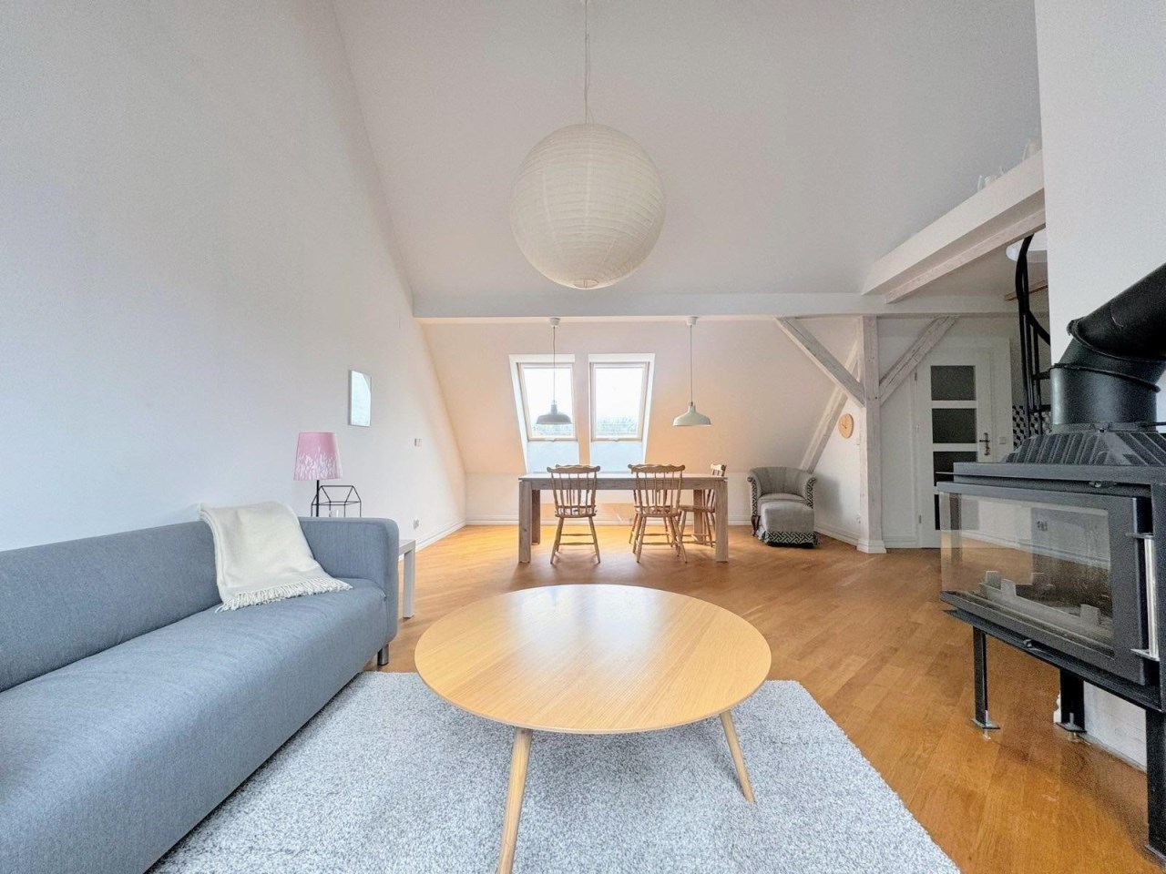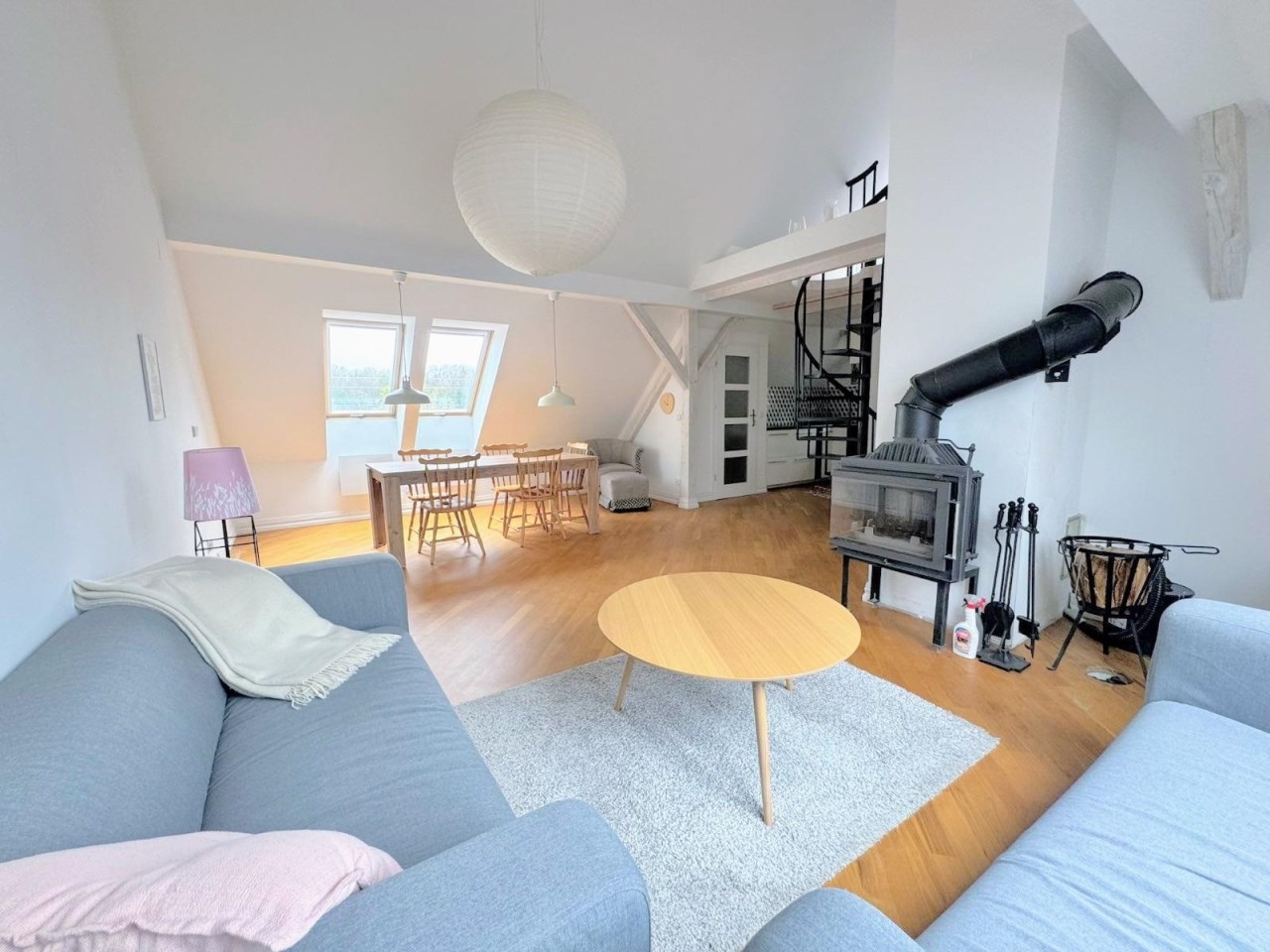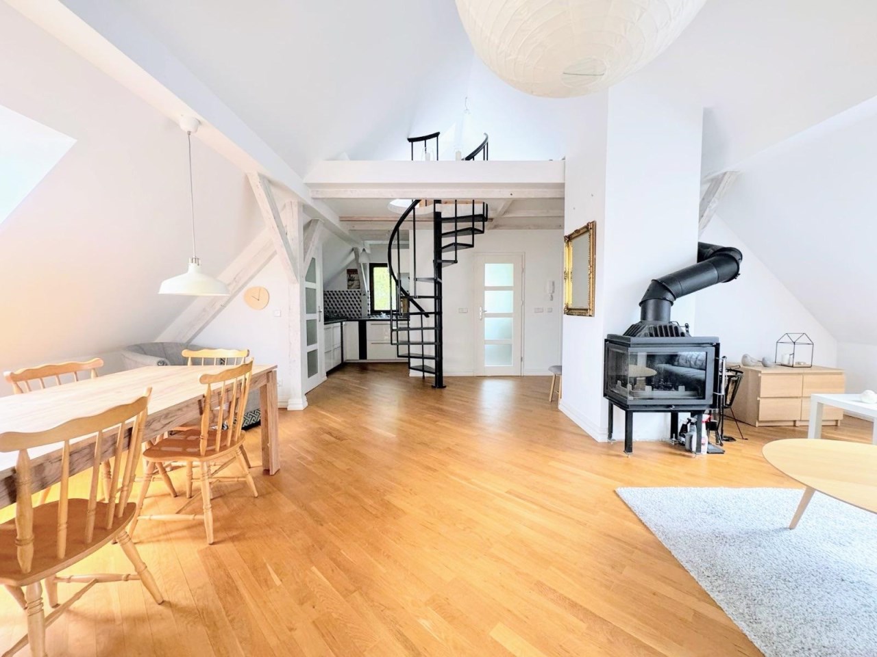 Lokal oferuje 52 m² powierzchni po podłodze, co przekłada się na funkcjonalną przestrzeń mieszkalną z charakterystycznymi skosami, nadającymi wnętrzu niepowtarzalny klimat. Dodatkowym atutem jest antresola o powierzchni ok. 10 m², idealna jako sypialnia, strefa relaksu lub miejsce do pracy.