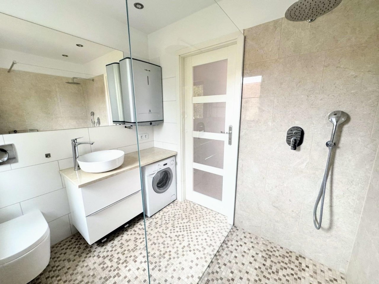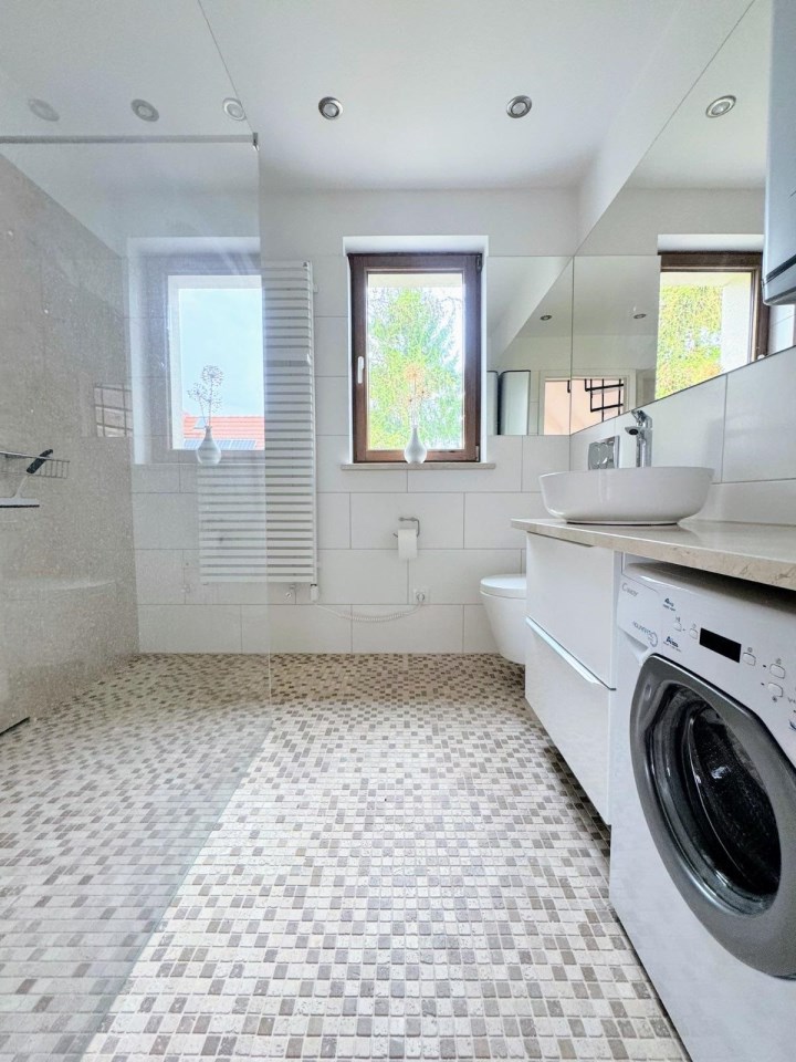 | Wyposażenie łazienki | WC, umywalka na szafce, prysznic, pralka, lustro |