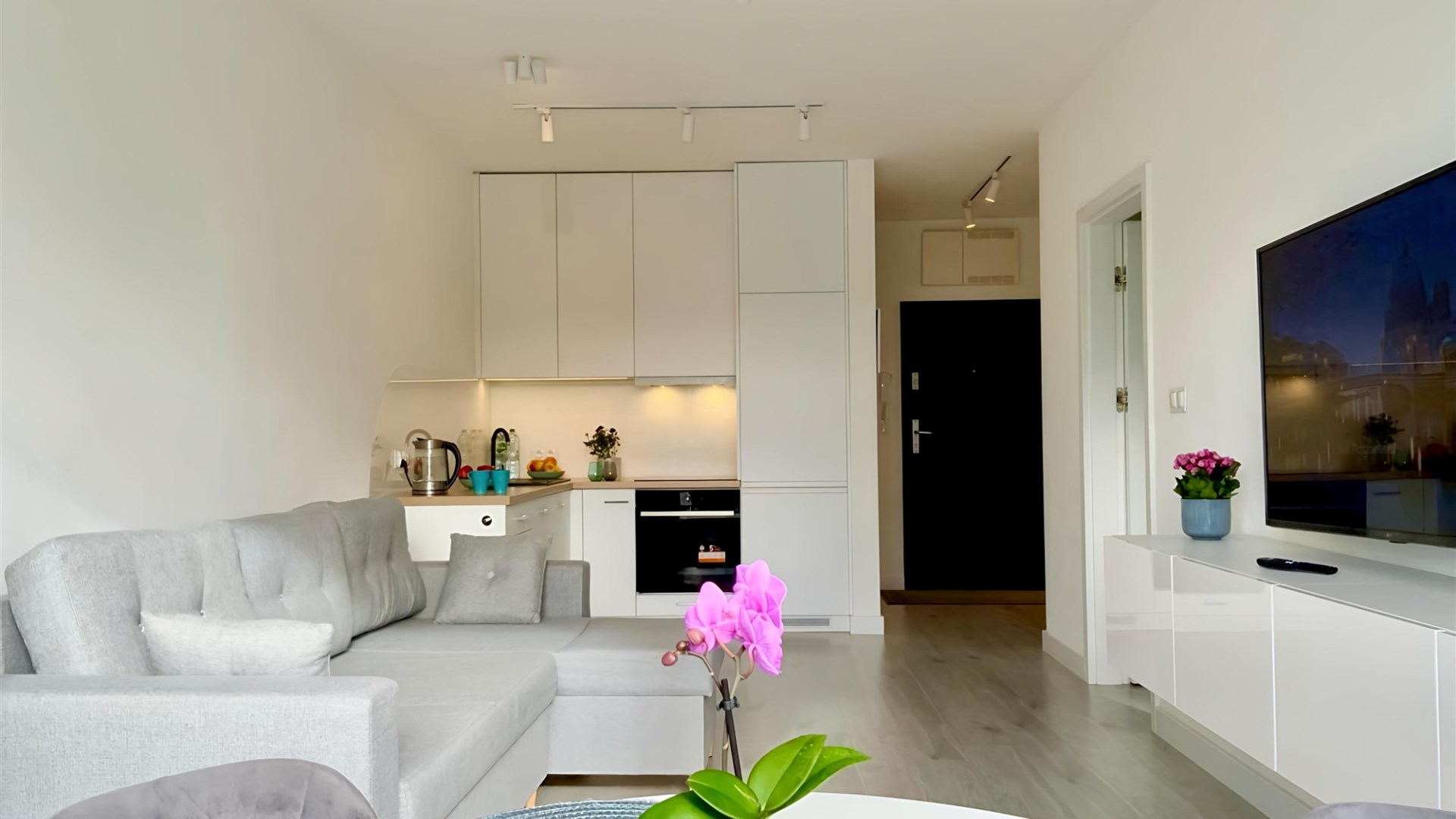 Mieszkanie o powierzchni 41 m² zostało wykończone z wysokiej jakości materiałów i jest w pełni umeblowane. W skład lokalu wchodzą: