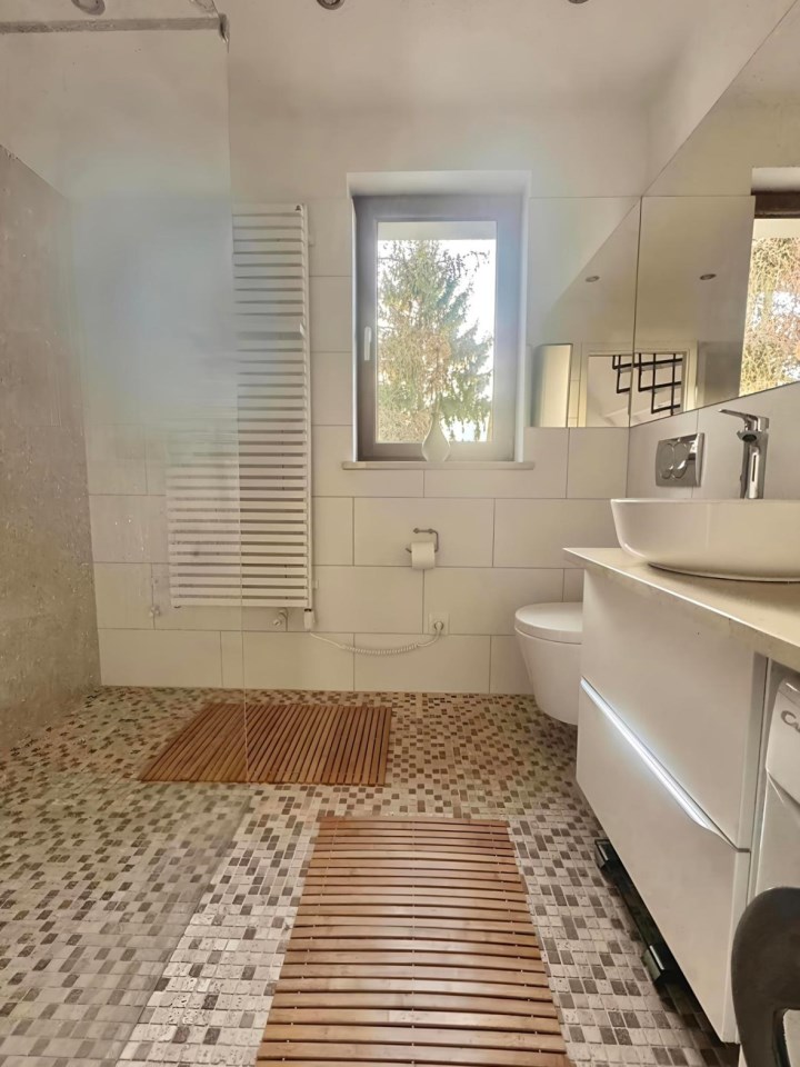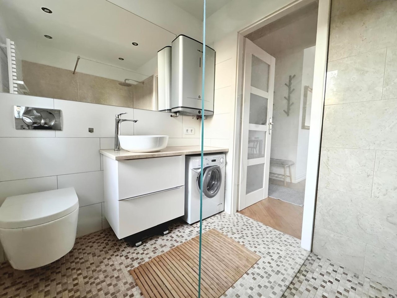 | Wyposażenie łazienki | WC, umywalka na szafce, prysznic, pralka, lustro |