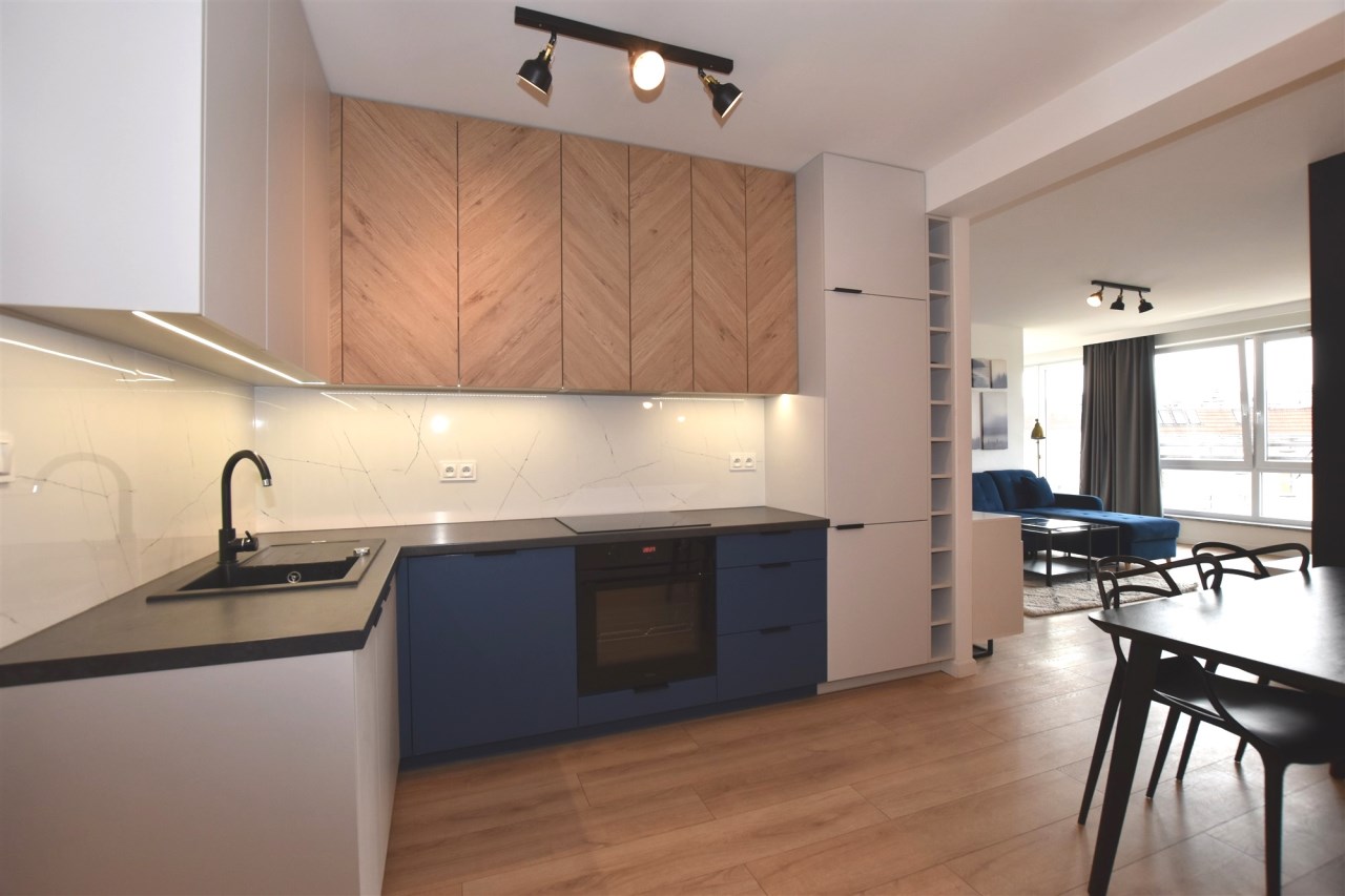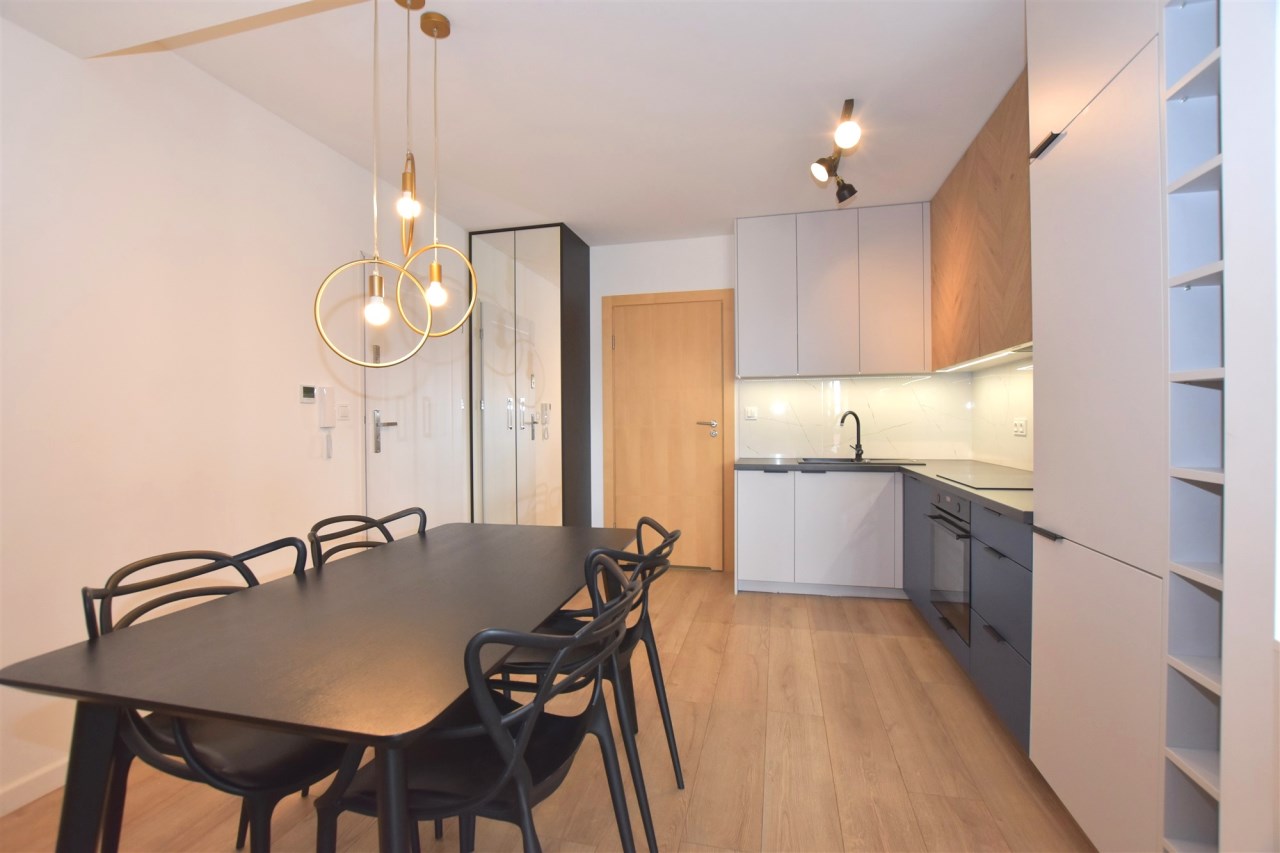 | Wyposażenie kuchni | zmywarka, zlewozmywak z baterią, szafki kuchenne, stół, sprzęt AGD, płyta indukcyjna, piekarnik, okap kuchenny, krzesła |