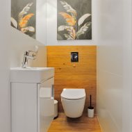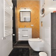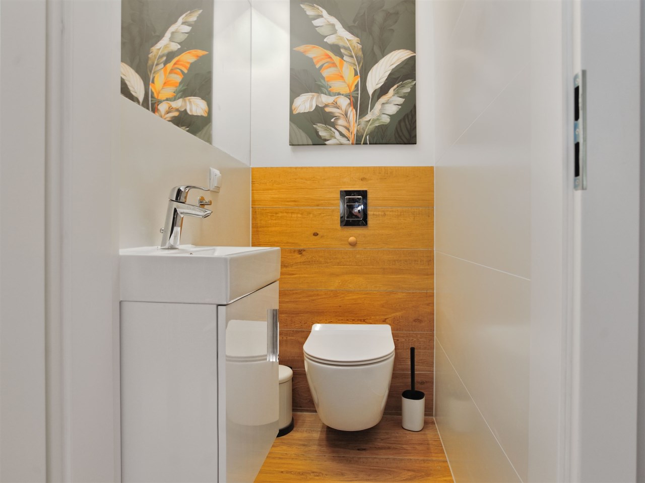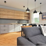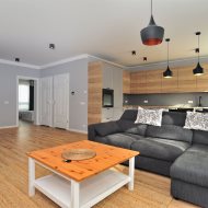 Salon dzienny z aneksem kuchennym, 3 sypialnie, hol, łazienka z kabiną prysznicową oraz toaleta.